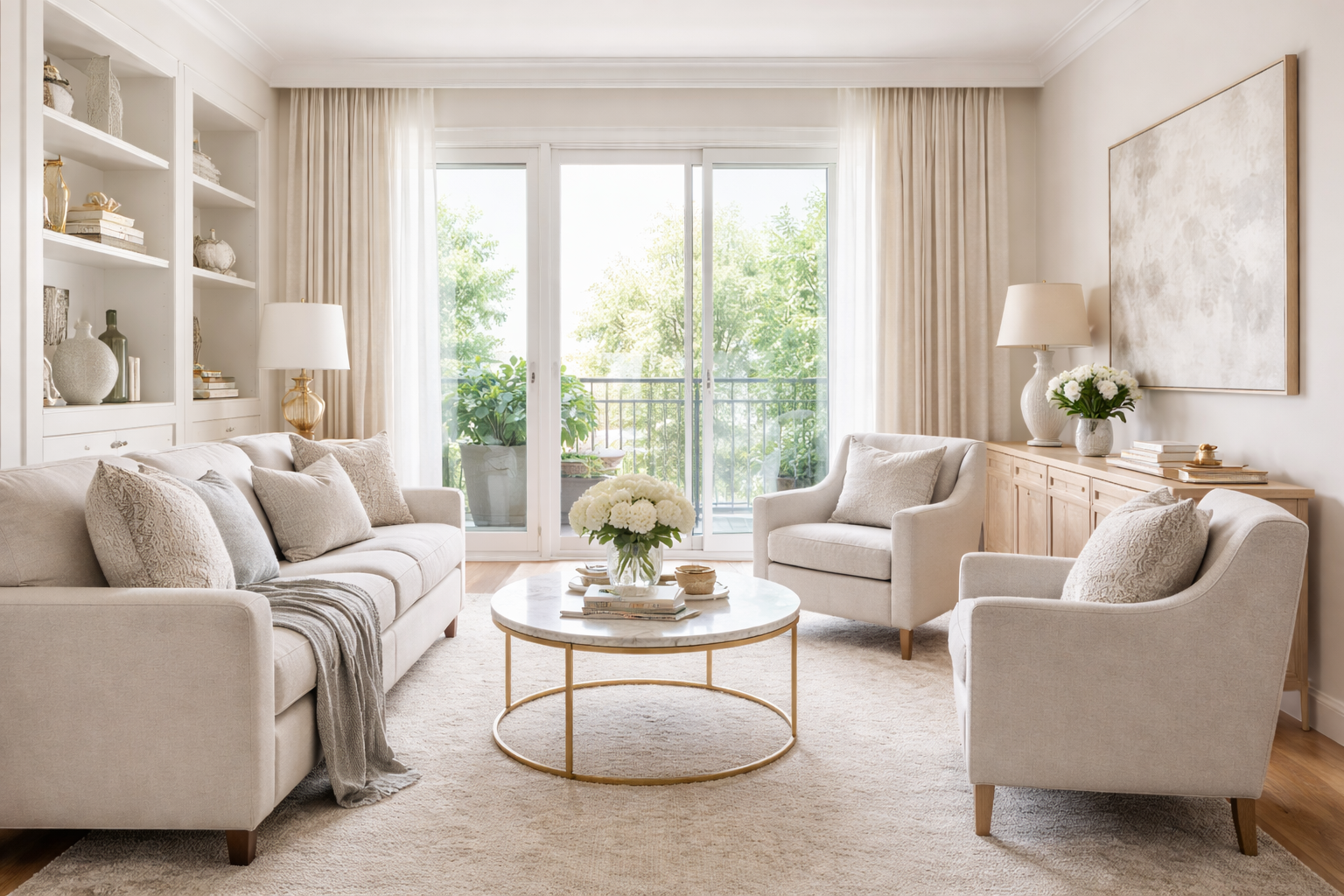 We source items through trusted vendors and designer trade accounts, and we manage ordering, delivery coordination, and in home setup to ensure everything arrives smoothly and is ready for use.